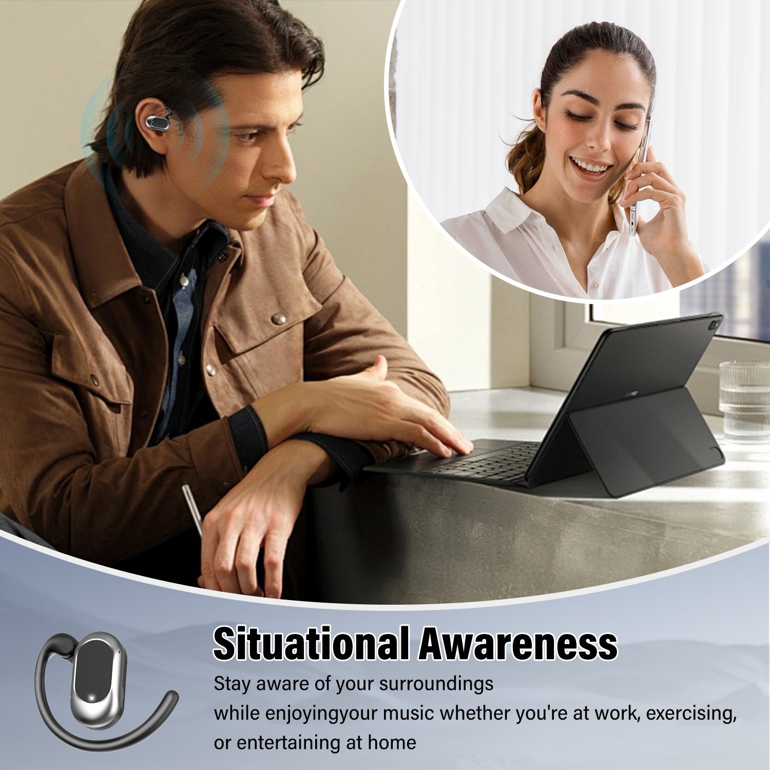 Aptkdoe Open Ear Earbuds, Bluetooth 5.4 Wireless Earbuds with Ear Hooks,70H HiFi Stereo Open Ear Headphones with Clear Calls, IPX7 Lightweight Air Conduction Headphones for Workouts and Running