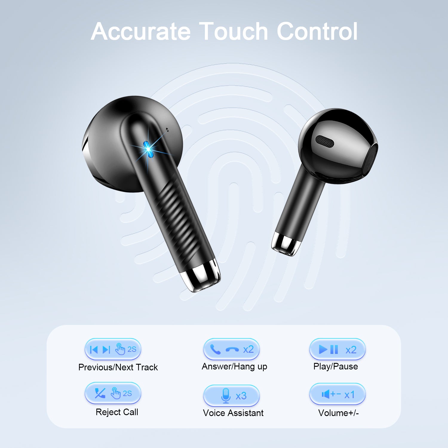 One-Step Pairing and Wide Compatibility: Built-in with a magnetic Hall-effect switch, once initially connected, the wireless earphones will automatically pair with your device upon opening the charging case. The earbuds feature touch control sensors, allowing you to adjust volume, play/pause music, answer/reject calls, next/previous track and activate voice assistants. The Bluetooth headsets are compatible with most Bluetooth devices, including iOS 9.0 and above, and Android 5.0 and above.