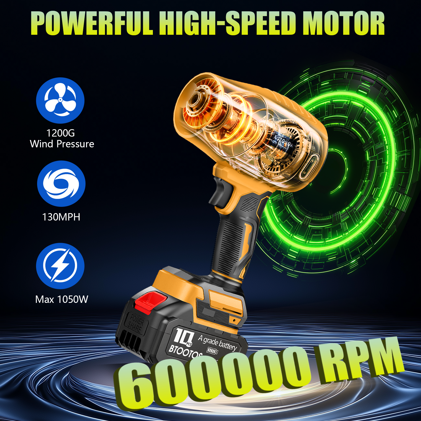 BTOOTOS Cordless Leaf Blower, Powerful Handheld Electric Blower with 2×2.0Ah Batteries&Charger, 600,000 RPM, Extended Nozzle, Lightweight Leaf Blowers for Patio, Leaves, Lawn, Yard, Dust, Snow, Car Cleaning