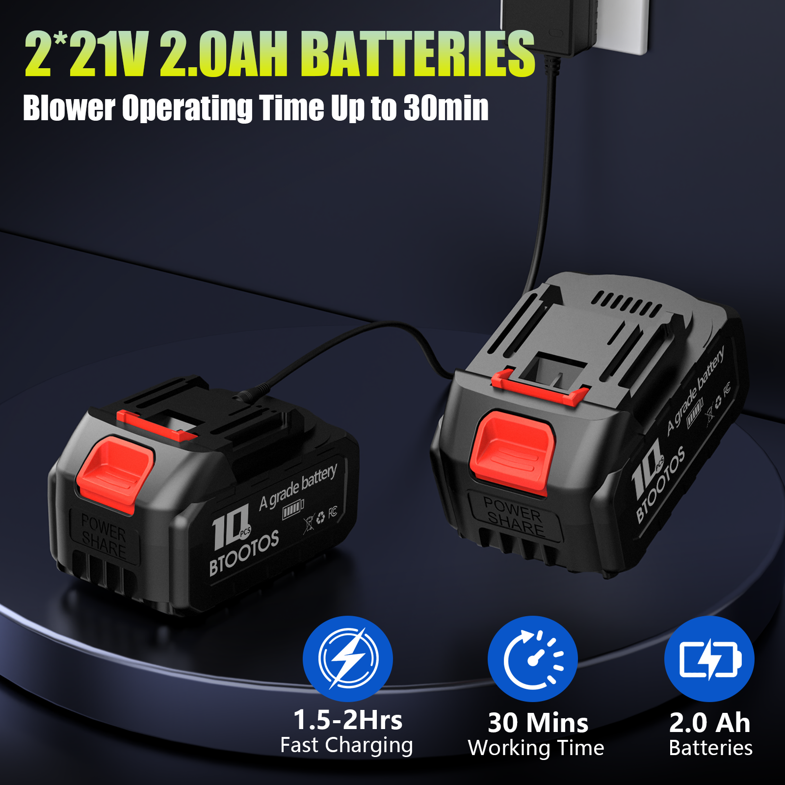 - Long Battery Life: Our Leaf Blower comes with two 21V-3Ah batteries and a fast charger. The two batteries ensure you can complete large-scale cleaning tasks without worrying about running out of power. When one battery is charging, another one can be charged, you will not need to worry about running out of the power.
