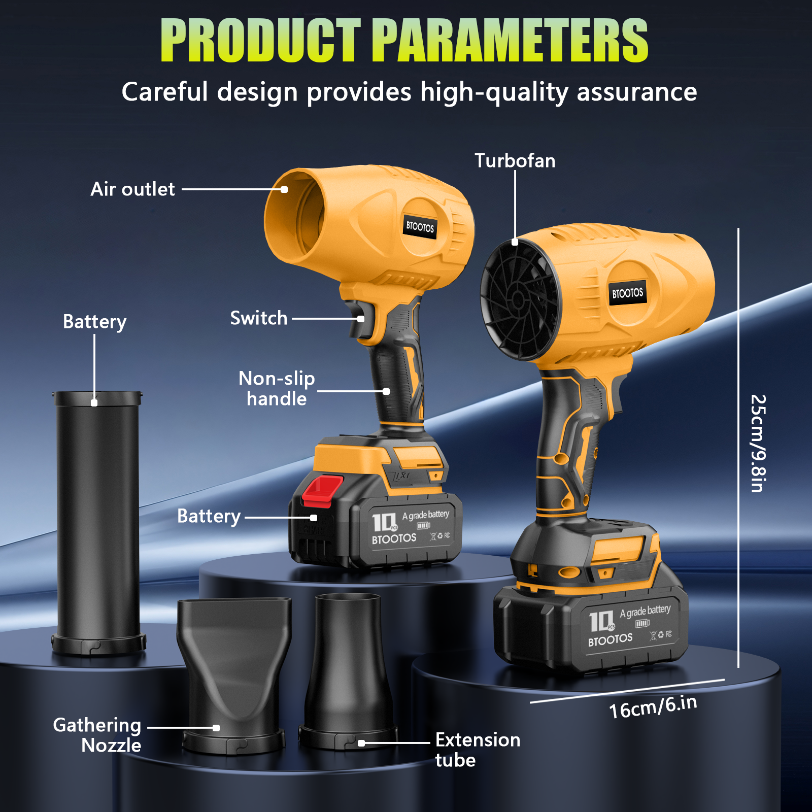 - Customer Support: If you have any questions after receiving your leaf blower, please feel free to contact us. Our team is available 7x24 to assist with any questions about your cordless leaf blower. We’re here to ensure you have the best experience possible.